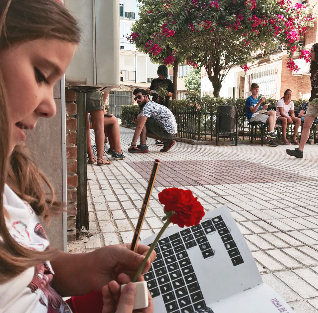 Para cerrar esta primera semana, el jueves 26 el grupo de exploradores pasó de la observación a la acción. No se trata solo de descubrir lo que ya hay, sino también de aprender a cuidarlo, ponerlo en valor, reconocer a quienes ya lo están haciendo… y para ello, hemos empezado aunando arte y ciencia ciudadana en la Plaza de la Constitución conocida como "el Parque", donde 5 alfombras habitadas por 5 especies venidas de los 5 continentes darán la bienvenida a los vecinos en la instalación: JARDÍN PLANETARIO
