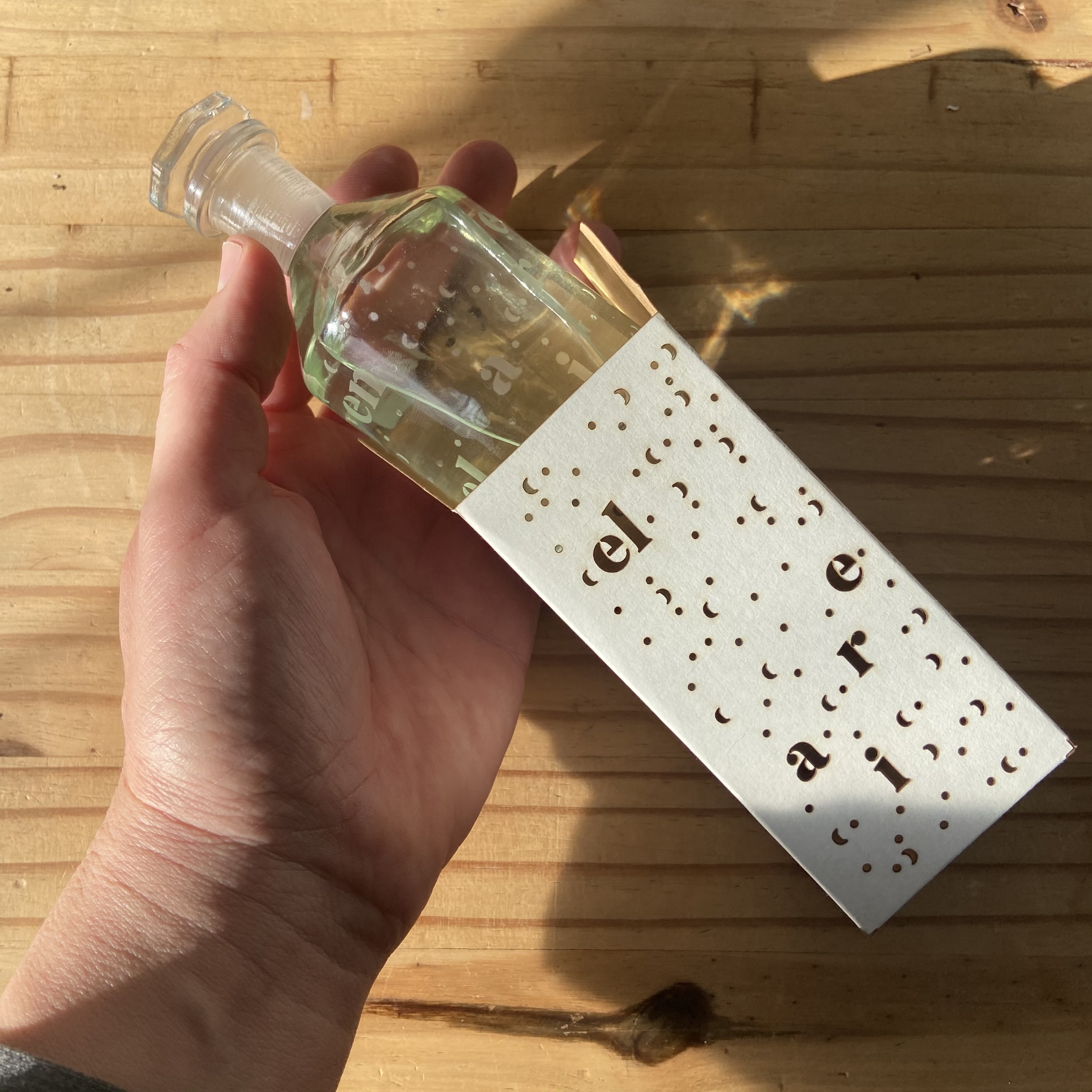 A partir de aquí, y con el bagaje de los talleres que se celebraron en julio, Bea Pavón, junto con Antonio Bonilla continuaron destilando toda esta información y creando las cajas en las que guardar los tarros de perfume. Seguirían el mismo patrón que las mashrabiyas que contienen los jardines verticales: una tipografía específica, un patrón que se repite, una forma similar a los cajones de nuestros jardines. Nuestro perfume, ya estaba listo para ser regalado a todos aquellos micromecenas que quieran dar continuidad a todo lo que estamos creando: un proceso de aprendizaje diferente desde la cultura y el arte, un acercamiento al entorno desde la diversidad ecológica, una forma diferente de crear integrando todos los sentidos y de mejorar, con el aporte individual, la vida en comunidad.