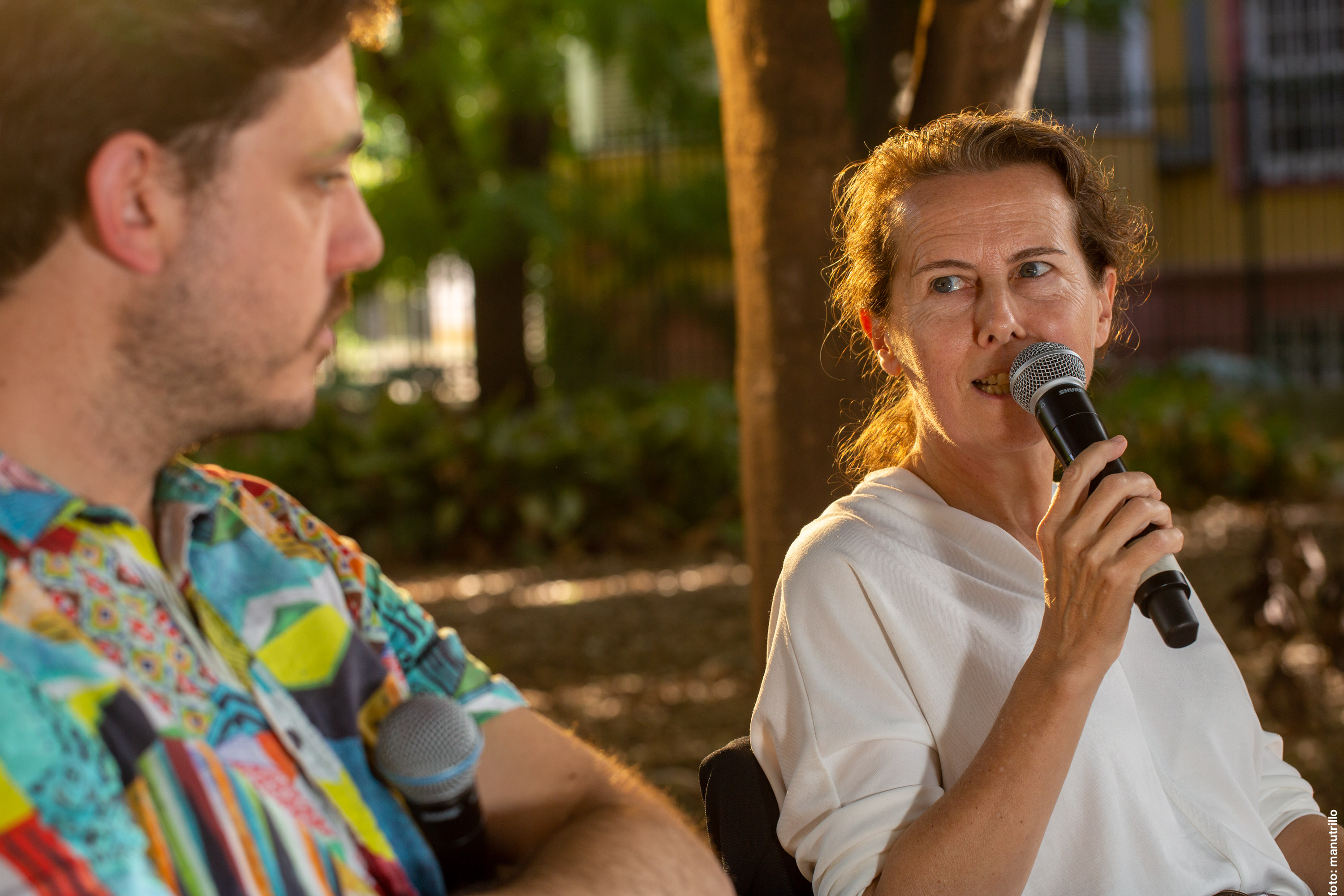 Una vez finalizada la presentación, Luz Fernández-Valderrama invitó a ambos participantes a que desarrollaran algo más sus proyectos y su relación con las instituciones, así como el concepto de extituciones, aparecido en otros momentos del encuentro.