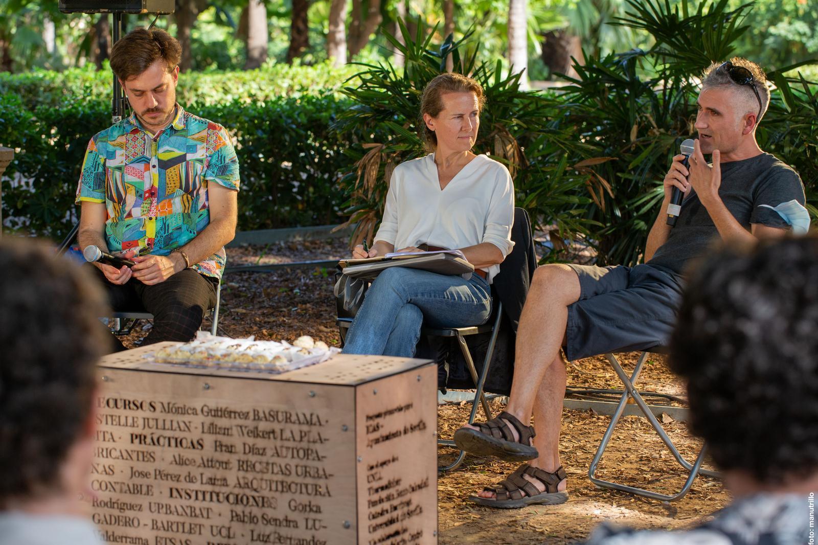 Por su parte, Gorka Rodríguez, también planteó su inquietud por la desafección con las instituciones. “Son culpables de allanar el terreno al neoliberalismo, de que tengamos un paisaje urbano herido, han sido las grandes aliadas de la desestructuración y desmantelamiento de los sistemas públicos. Pero me inquieta que se quiera hacer un agujero tan grande para que las instituciones caigan por él.” Continuó recordando que cargarse las instituciones forma parte del discurso neoliberal y que el reto es ser capaces de crear esos agujeros por los que entrar y transformarla, pero no hacerla desaparecer. También reconoció la importancia de contar con aliados dentro de la administración para lograr ese cambio. “Si no está ese funcionario que empiece a hakear el sistema operativo de la administración, es difícil, pero también hay que seguir contaminando desde fuera”. En este sentido recordó extituciones que han logrado que se produzcan cambios reales para la vida de las personas: la PAH o la plataforma de micromezenazgo Goteo. En cuanto a la posibilidad de lograr cambios desde dentro aludió a los programas de laboratorios promovidos por algunas instituciones.