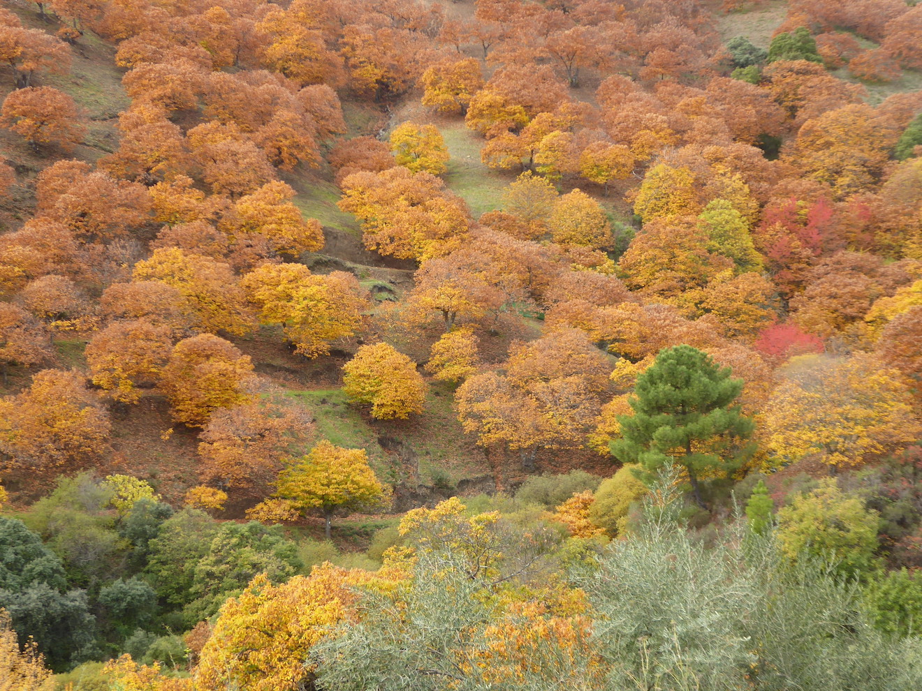 Y después en un paseo de La Noche en Blanco aprendí a usar la aplicación, lo que me posibilita, cuando paseo por las calles de Sevilla, identificar los árboles y saber de donde proceden. Normalmente salgo todas las semanas a andar al campo, bueno, a subir montañas... Ahora, los castaños, tanto de la Sierra de Aracena como del Valle del Genal están espectaculares.