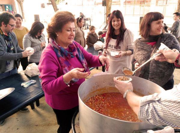 También fue un regalo, y un manjar, el almuerzo preparado por los propios vecinos de la Asociación Familiar La Oliva para esta jornada: unos estupendos garbanzos con langostinos que dieron a los participantes fuerzas para continuar con las actividades de la tarde. Como en la celebración de una gran familia, así nos sentíamos todos, aunque tal vez con una selección musical más cuidada de lo que es habitual en este tipo de festejos. Primero, con Alfonso García Cano en las labores de DJ, acompañando la animación de la Plazuela del Estanco con estilos musicales de lo más diversos: del rock andaluz al acid jazz, pasando por auténticas rarezas del pop patrio. Más tarde vendría la charanga en todo su esplendor.