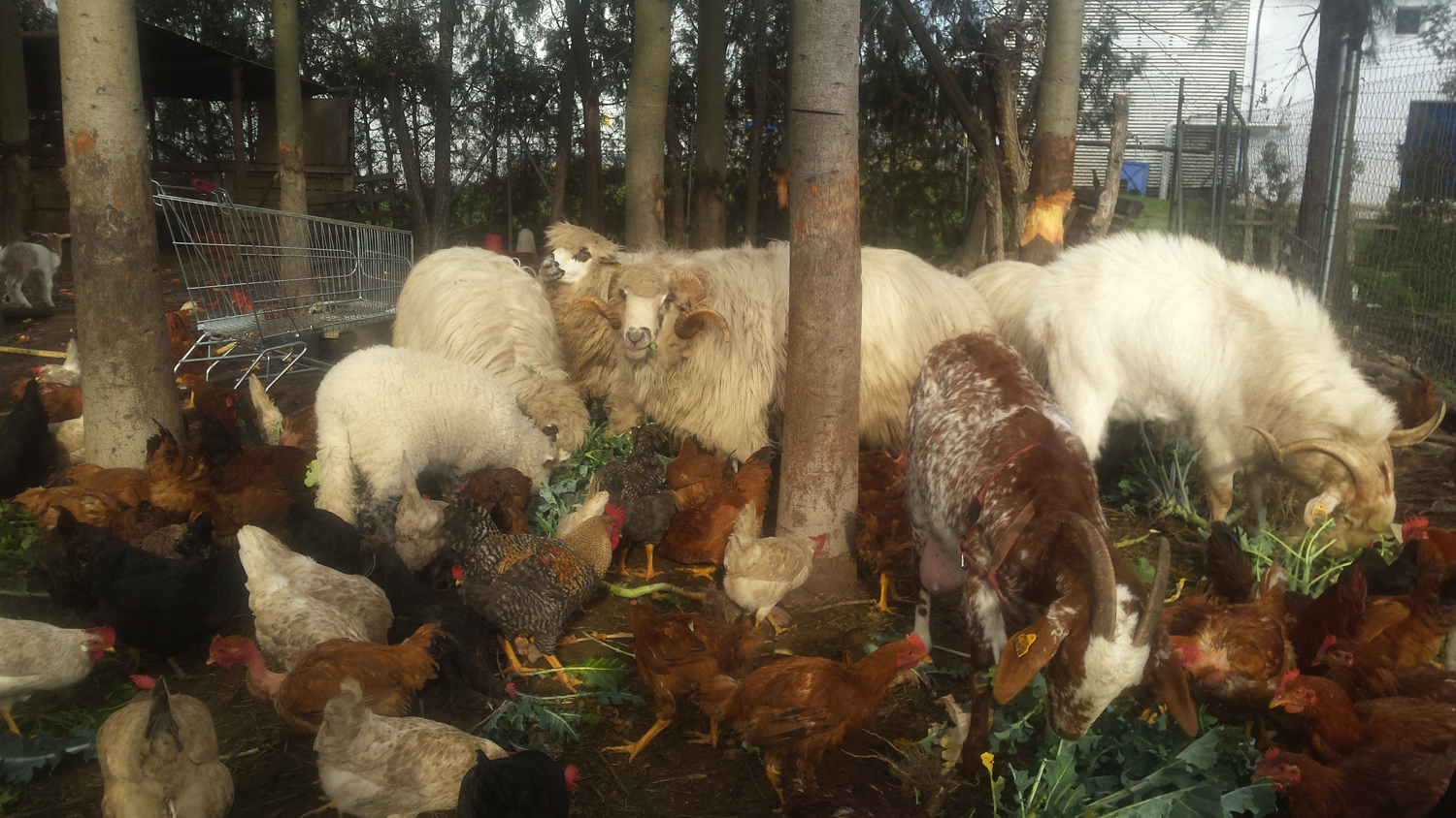 Con la ayuda de los voluntarios manitas se construyó un amplio gallinero cubierto de 5×5 metros, con ponederos y perchas, cuidando que se dieran las mejores condiciones para garantizar el bienestar de los animales. Alrededor se dejó un patio arbolado de 400 m2 para asueto de las gallinas, donde pueden hacer vida social, asolarse y rebuscar “bichillos” en la tierra. De promedio se mantienen unas 40 gallinas y entre 5 y 10 pollos y gallos. Hemos conseguido tener hasta 150 ejemplares… pero debido a los continuos robos y destrozos no quedó otra alternativa que paralizar el proyecto unos meses. Este pasado mes de noviembre iniciamos de nuevo el proyecto con una docena de gallinas, esperando sean respetadas.