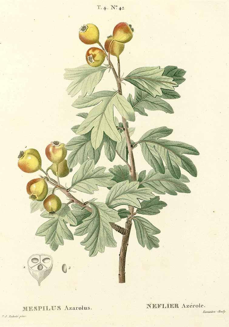 RosaceaeEl acerolo es un arbusto caducifolio y a veces espinoso procedente del sur de Europa, Oriente Medio y norte de África. Pertenece al género Crataegus, nombre procedente del griego kratos, "duro", probablemente en alusión a su madera. El epíteto azarolus deriva de su nombre vernáculo, acerolo.
