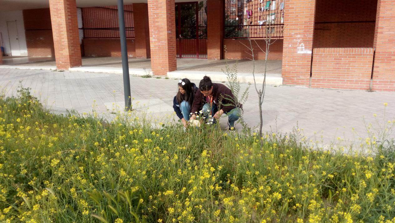 Como primera acción de dinamización propusimos una jornada con la vecindad en el jardín para reconocer la biodiversidad del parque, señalizando las especies de flora silvestre que lo colonizaban, así como las especies arbóreas y arbustivas que se plantaron en su inauguración.